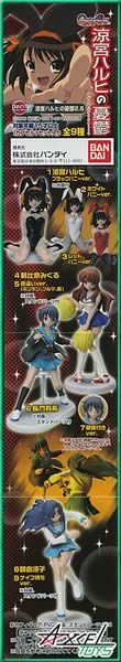 | 種類、詳細 | 定価286円(税別) 全9種 ●涼宮ハルヒ ブラックバニーver. ●涼宮ハルヒ ホワイトバニーver. ●涼宮ハルヒ レッドバニーver. ●朝比奈みくる ●朝比奈みくる 色違いver. ●長門有季 ●長門有季 眼鏡付きver. ●朝倉涼子 ●朝倉涼子 ナイフ持ちver. ※全高約6.9〜12.2cm(台座含む) ※製品素材[彩色フィギュア:PVC/台座、スタンドパーツ:ABS] ※2007年11月発売 |